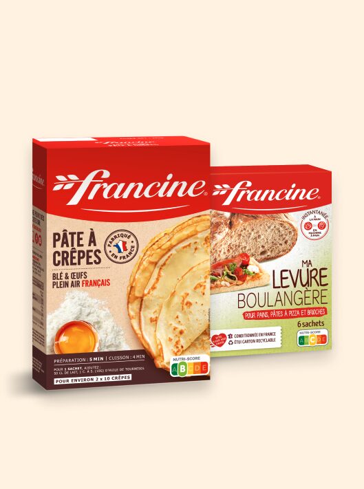 Chez Francine, nous avons à cœur de réduire les pertes alimentaires. En amont d’abord, lors de la transformation de nos blés. Et notre démarche anti-gaspillage ne s’arrête pas là et va jusqu’à votre cuisine où Francine œuvre en vous proposant chaque mois des astuces et des recettes anti-gaspi qui transforment vos restes en plats savoureux. Nous travaillons également en parallèle à réduire le poids de nos emballages pour générer moins de déchets. Parce que chaque geste compte pour préserver notre planète et ses ressources !