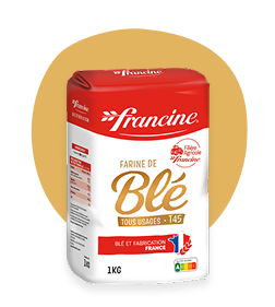 Dans une démarche de progrès continu, ces engagements nous permettent de garantir un blé de qualité, cultivé avec soin… et que vous retrouvez dans notre référence incontournable : la farine de blé T45 Francine !
